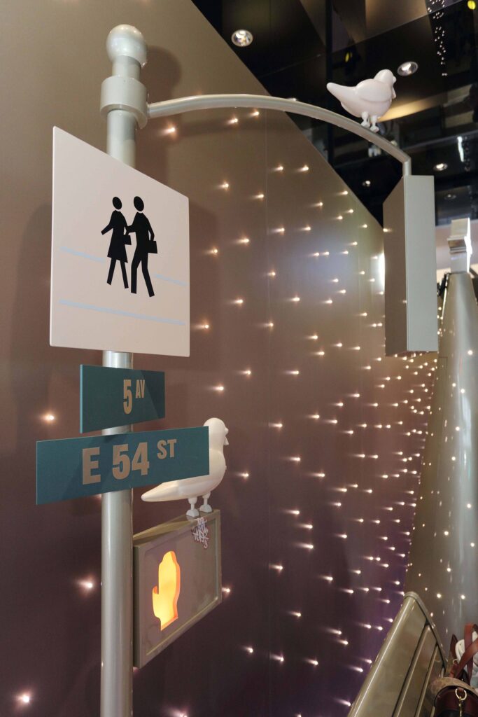 Com vista para a cidade mágica no globo de neve, estão os arranha-céus de Nova York, como o One World Trade e o Empire State Building. Um metrô com passageiros indo para casa de trem. Um telefone público de Nova York etiquetados com adesivos. O poste de luz da Coach House atravessa as ruas. Uma bodega aberta 24 horas por dia, 7 dias por semana – onde você pode conseguir café, bilhetes de loteria, cerveja gelada e muito mais. Uma aparição especial do infame rato de pizza e